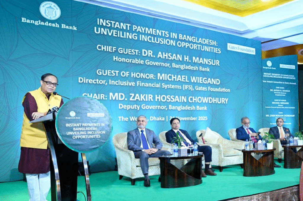 গেটস ফাউন্ডেশনের সহযোগিতায় ইনক্লুসিভ ইনস্ট্যান্ট পেমেন্ট সিস্টেম (IIPS) বাস্তবায়নের মাধ্যমে এই উদ্যোগগুলিকে পরবর্তী স্তরে নিয়ে যাওয়ার জন্য, বাংলাদেশ ব্যাংক সোমবার (২৪ নভেম্বর, ২০২৫) ঢাকার দ্য ওয়েস্টিনে “বাংলাদেশে তাৎক্ষণিক অর্থপ্রদান: অন্তর্ভুক্তির সুযোগ উন্মোচন” শীর্ষক একটি উচ্চ-স্তরের স্টেকহোল্ডারদের অংশগ্রহণের অনুষ্ঠানের আয়োজন করে। অনুষ্ঠানে প্রধান অতিথি ছিলেন বাংলাদেশ ব্যাংকের গভর্নর ড. আহসান এইচ. মনসুর এবং সভাপতিত্ব করেন ডেপুটি গভর্নর জনাব মো. জাকির হোসেন চৌধুরী। বাংলাদেশ ব্যাংকের শীর্ষ কর্মকর্তারা, ব্যাংকের এমডি/সিইওরা। অনুষ্ঠানে বিশিষ্ট অতিথি হিসেবে উপস্থিত ছিলেন এমএফএস, ফিনটেক, আর্থিক ও ক্ষুদ্রঋণ প্রতিষ্ঠান, এমআরএ-এর প্রতিনিধিরা, যা বহু-ক্ষেত্রের মধ্যে শক্তিশালী সম্পৃক্ততার প্রতিফলন ঘটায়। গেটস ফাউন্ডেশনের ইনক্লুসিভ ফাইন্যান্সিয়াল সিস্টেমস (আইএফএস) পরিচালক মিঃ মাইকেল উইগ্যান্ড এবং আইএফএস বাংলাদেশ কান্ট্রি লিড মিসেস স্নিগ্ধা আলীও অনুষ্ঠানে উপস্থিত ছিলেন।