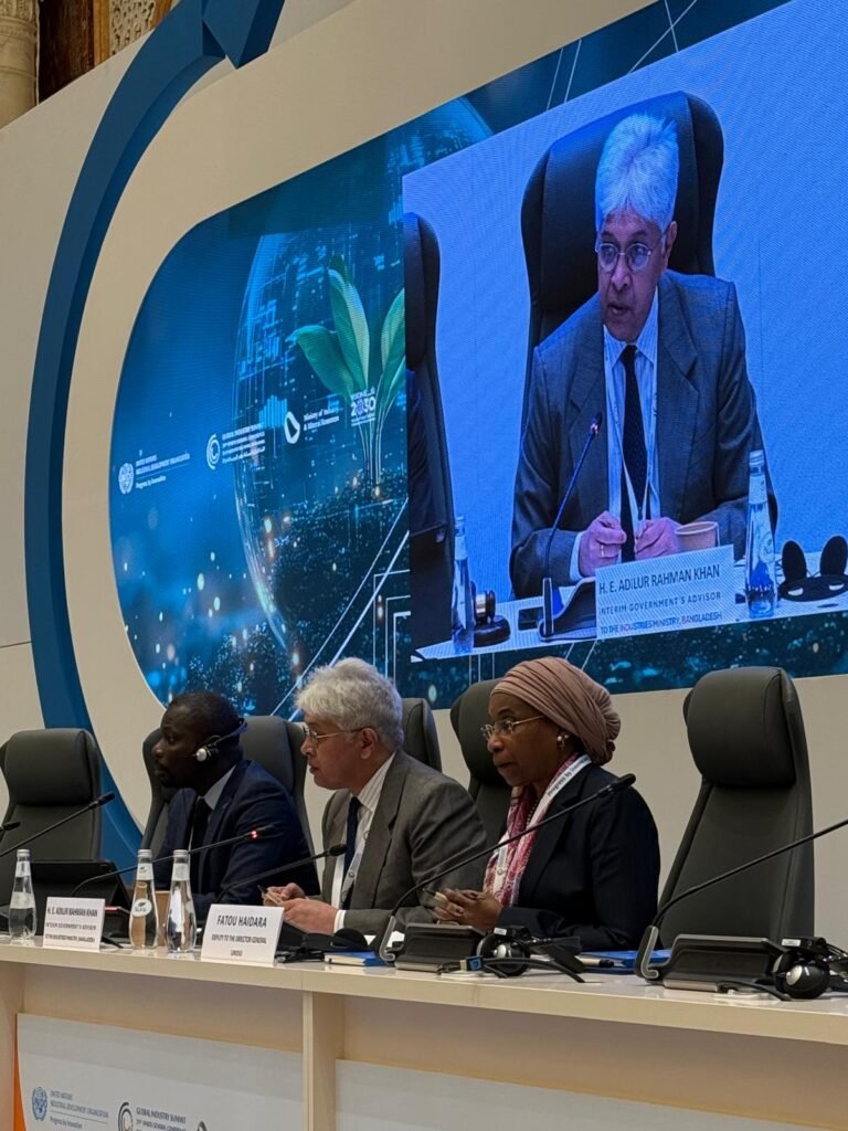শিল্প উপদেষ্টা আদিলুর রহমান খান শনিবার (২২ নভেম্বর ২০২৫) তারিখে রিয়াদে অনুষ্ঠিত জাতিসংঘ শিল্প উন্নয়ন সংস্থা (UNIDO) কর্তৃক আয়োজিত এবং সৌদি আরব সরকারের আয়োজনে অনুষ্ঠিত স্বল্পোন্নত দেশসমূহের (LDCs) ১১তম মন্ত্রী পর্যায়ের সম্মেলনে অংশগ্রহণের জন্য ৪ সদস্যের বাংলাদেশ প্রতিনিধি দলের নেতৃত্ব প্রদান করেন।