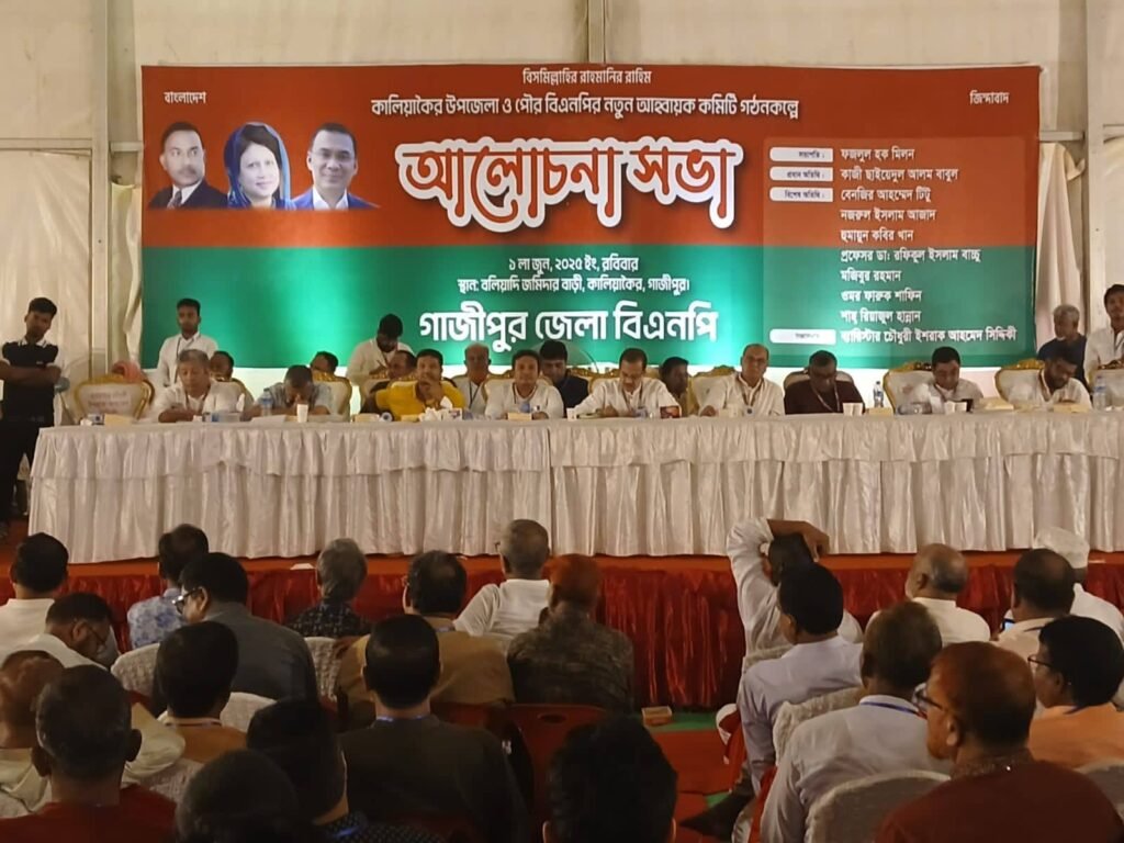 গাজীপুর জেলার কালিয়াকৈর উপজেলা ও পৌর বিএনপির আহ্বায়ক কমিটি গঠনের লক্ষ্যে এক আলোচনা সভা অনুষ্ঠিত হয়েছে রবিবার (১ জুন ২০২৫) ঐতিহাসিক বলিয়াদি জমিদার বাড়ীতে। সভায় সভাপতিত্ব করেন গাজীপুর জেলা বিএনপির আহ্বায়ক জনাব ফজলুল হক মিলন। প্রধান অতিথি হিসেবে উপস্থিত ছিলেন কেন্দ্রীয় বিএনপির নেতা জনাব কাজী ছাইয়েদুল আলম বাবুল।