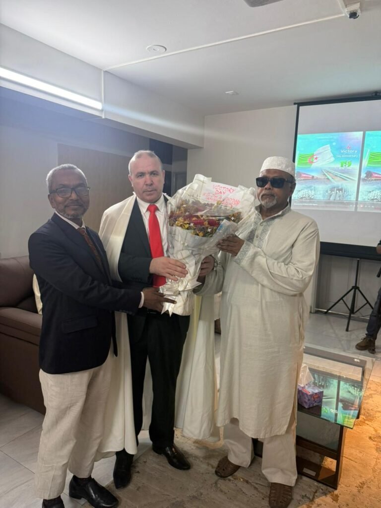 বাংলাদেশে অবস্থিত আলজেরীয় দূতাবাস ১৯ মার্চ ২০২৬ তারিখে ঢাকার বারিধারায় তাদের প্রাঙ্গণে সসম্মানে আলজেরিয়ার বিজয় দিবস পালন করেছে। এই অনুষ্ঠানে সুশীল সমাজের বিশিষ্ট প্রতিনিধি, ইসলামী পণ্ডিত, প্রখ্যাত ব্যবসায়ী নেতা, শীর্ষস্থানীয় গণমাধ্যমের সাংবাদিক এবং বিজ্ঞানী সম্প্রদায়ের সদস্যরা উপস্থিত ছিলেন।