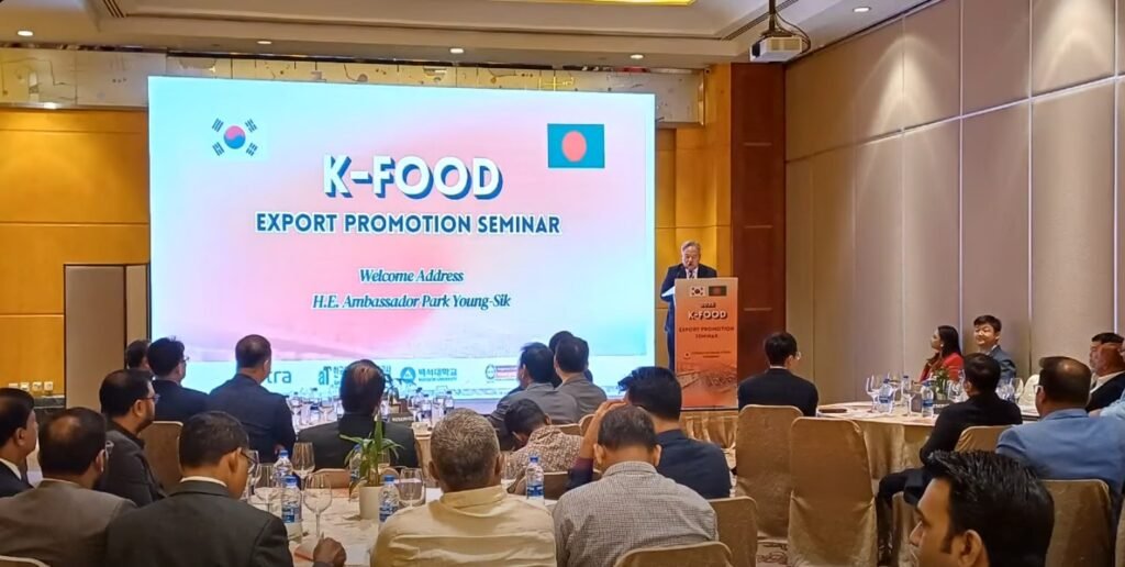 বুধবার (১২ নভেম্বর, ২০২৫) কোরিয়া প্রজাতন্ত্রের দূতাবাস, বাংলাদেশ অ্যাসোসিয়েশন অফ ফরেন অ্যান্ড ইমপোর্ট ফুড সাপ্লায়ার্স অ্যাসোসিয়েশন (BAFISA) এর সাথে অংশীদারিত্বে, দ্রুত বর্ধনশীল বাংলাদেশের বাজারে কোরিয়ান খাদ্য পণ্যের ক্রমবর্ধমান সুযোগগুলি অন্বেষণ এবং চ্যালেঞ্জগুলি মোকাবেলা করার জন্য একটি গুরুত্বপূর্ণ K-খাদ্য রপ্তানি উন্নয়ন সেমিনারের আয়োজন করে।