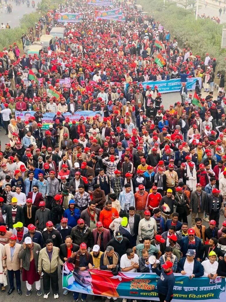 বিএনপির ভারপ্রাপ্ত চেয়ারম্যান জনাব তারেক রহমানের ঐতিহাসিক স্বদেশ প্রত্যাবর্তন উপলক্ষে তাঁকে স্বাগত জানাতে গাজীপুর জেলার বিভিন্ন থানা ও ওয়ার্ড পর্যায়ের নেত্রীবৃন্দের অংশগ্রহণে আজ বৃহস্পতিবার (২৫ ডিসেম্বর, ২০২৫) ঢাকার ৩০০ ফিটে গণ সংবর্ধনাস্থলে অংশগ্রহণ করেন।