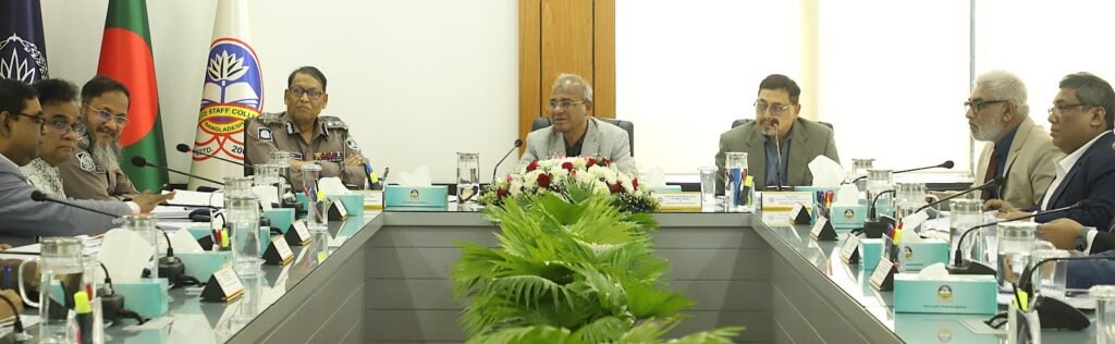 পুলিশ স্টাফ কলেজ বাংলাদেশ-এর রেক্টর (অতিরিক্ত আইজিপি) ও বোর্ড সচিব কাজী মোহাম্মদ ফজলুল করিম সভা পরিচালনা করেন। সভায় পুলিশ স্টাফ কলেজে উচ্চতর প্রশিক্ষণ আয়োজন ও প্রশিক্ষণের ক্ষেত্র বিস্তৃতকরণ, অবকাঠামোগত উন্নয়ন পরিকল্পনা, সাংগঠনিক কাঠামো সংস্কার ও জনবল বৃদ্ধি, একাডেমিক এবং গবেষণা কার্যক্রমসহ প্রশাসনিক বিষয়ে বিস্তারিত আলোচনা করা হয়।
