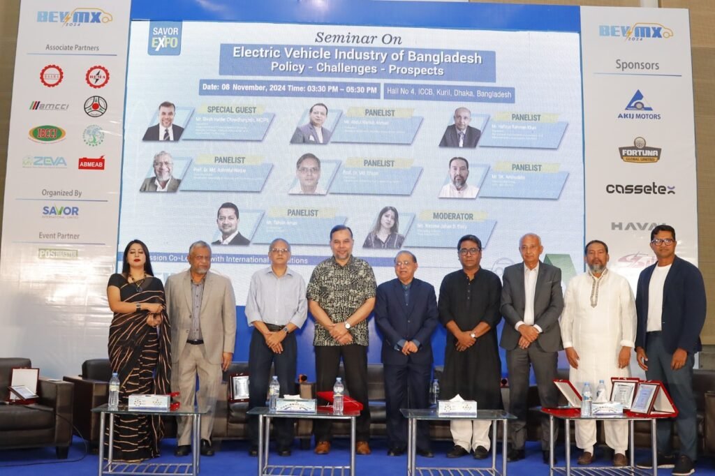 সেভর ইন্টারন্যাশনাল লিমিটেডের আয়োজনে “বাংলাদেশের ইলেকট্রিক ভেহিকেল ইন্ডাস্ট্রি: নীতিমালা – চ্যালেঞ্জ – সম্ভাবনা” শীর্ষক সেমিনারটি অনুষ্ঠিত হয়েছে শুক্রবার বিকাল ৩:৩০ টায়, বসুন্ধরা কনভেনশন সেন্টার (আইসিসিবি) এর হল ৪-এ। সেমিনারটিতে অংশ নেন শিল্প খাতের শীর্ষ নেতৃত্ব, সরকারি কর্মকর্তা ও একাডেমিক বিশেষজ্ঞরা, যাঁরা বাংলাদেশের ইলেকট্রিক ভেহিকেল (ইভি) শিল্পের ভবিষ্যৎ নিয়ে আলোচনা করেন। মূল আলোচনা ছিল নীতিমালা কাঠামো, শিল্পের চ্যালেঞ্জ এবং টেকসই পরিবহণে ইভি খাতের সম্ভাবনার উপর।