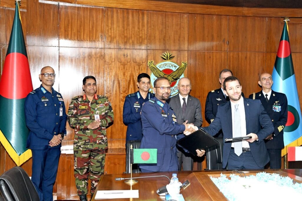 বিমান বাহিনী সদর দপ্তরে সম্মানিত বিমান বাহিনী প্রধান এয়ার চীফ মার্শাল হাসান মাহমুদ খাঁন, বিবিপি, ওএসপি, জিইউপি, এনএসডব্লিউসি, পিএসসি এবং বাংলাদেশে নিযুক্ত ইতালির মান্যবর রাষ্ট্রদূত Antonio Alessandro উপস্থিতিতে বাংলাদেশ বিমান বাহিনী ও Leonardo S.p.A Italy মধ্যে লেটার অব ইনটেন্ট স্বাক্ষরিত হয়। উক্ত অনুষ্ঠানে প্রিন্সিপাল স্টাফ অফিসার, বাংলাদেশ সশস্ত্র বাহিনী বিভাগ এবং ইতালির সংশ্লিষ্ট প্রতিনিধিগনও উপস্থিত ছিলেন।