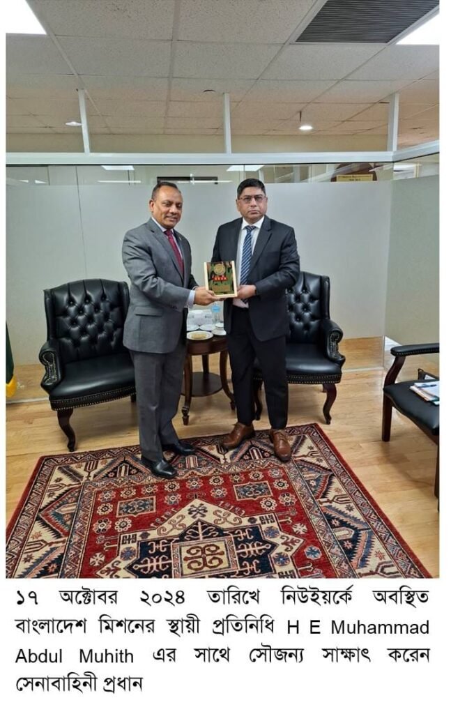 উল্লেখ্য, সেনাবাহিনী প্রধান গত ১৫ অক্টোবর ২০২৪ তারিখে সরকারি সফরে যুক্তরাষ্ট্র ও কানাডা গমন করেছিলেন।