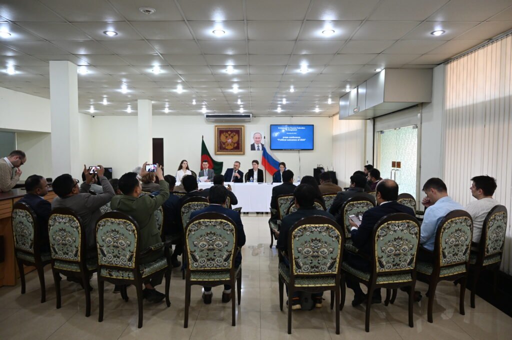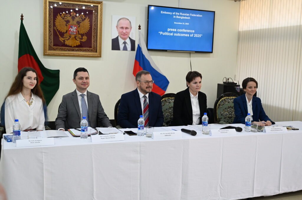 রাশিয়ার রাষ্ট্রদূত আলেকজান্ডার খোজিন আজ সোমবার (২২ ডিসেম্বর, ২০২৫) বছরের শেষ সংবাদ সম্মেলনে ২০২৫ সালের রাশিয়া–বাংলাদেশ সম্পর্কের অর্জন তুলে ধরেন। তিনি বিশেষভাবে সংস্কৃতি, শিক্ষা ও বিজ্ঞান ক্ষেত্রে দুই দেশের ক্রমবর্ধমান সহযোগিতা সম্পর্কে আলোকপাত করেন।
