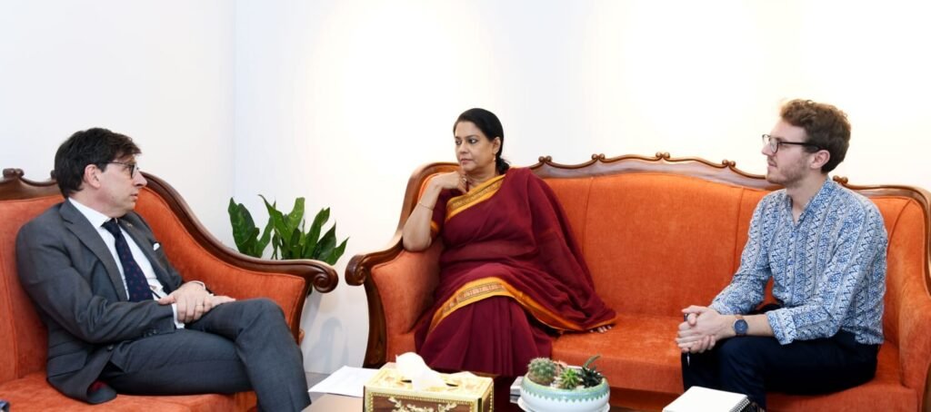 বাংলাদেশে নিযুক্ত ফ্রান্সের রাষ্ট্রদূত জঁ-মার্ক সেরে-শারলে (Jean-Marc Séré-Charlet) মঙ্গলবার (২৫ নভেম্বর ২০২৫) সচিবালয়ে পরিবেশ, বন ও জলবায়ু পরিবর্তন এবং পানি সম্পদ উপদেষ্টা সায়েদা রিজওয়ানা হাসানের সঙ্গে সৌজন্য সাক্ষাৎ করেন।